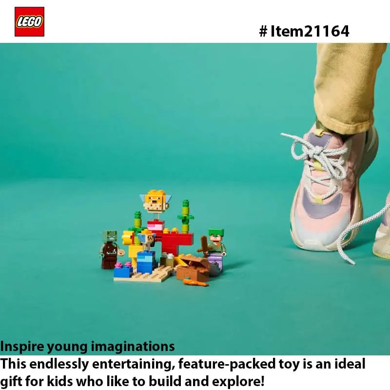 LEGO® Minecraft™ The Coral Reef (21164) is a hands-on treat for Minecraft players that brings the game’s underwater adventures to life with endlessly reconfigurable LEGO bricks.